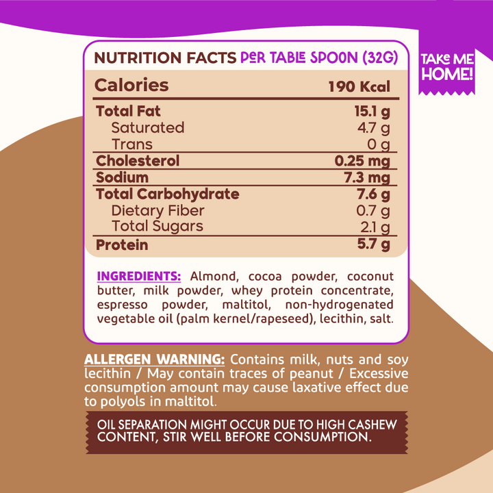 - Smooth and creamy almond spread with rich espresso flavor