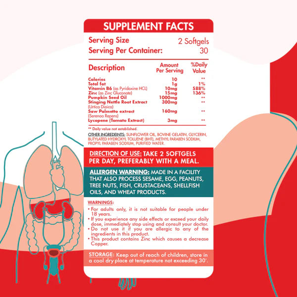 Support your prostate health and overall vitality with Organic Nation Prostate Kit. Each soft gel combines essential nutrients and herbal extracts such as saw palmetto, zinc, and pumpkin seed oil — clinically recognized for maintaining a healthy prostate and urinary function. This natural formula helps reduce discomfort, supports hormonal balance, and promotes optimal male wellness.